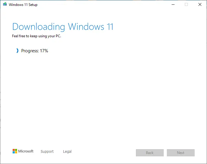 7. The tool will start downloading the Windows 11 installation files. This could take several minutes to complete depending on your connection speed.