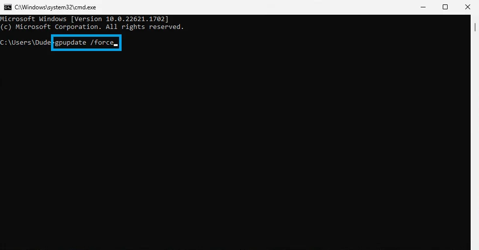 B. Type gpupdate /force and hit Enter. Wait for the policy update to finish, then you can close the window and you're done!