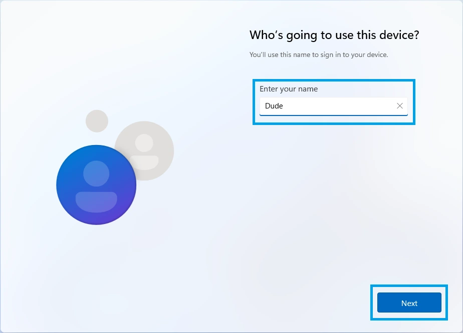 15. The next screen will ask you to enter your sign-in name you would like to use for this device. Type something into the box, and hit Next.