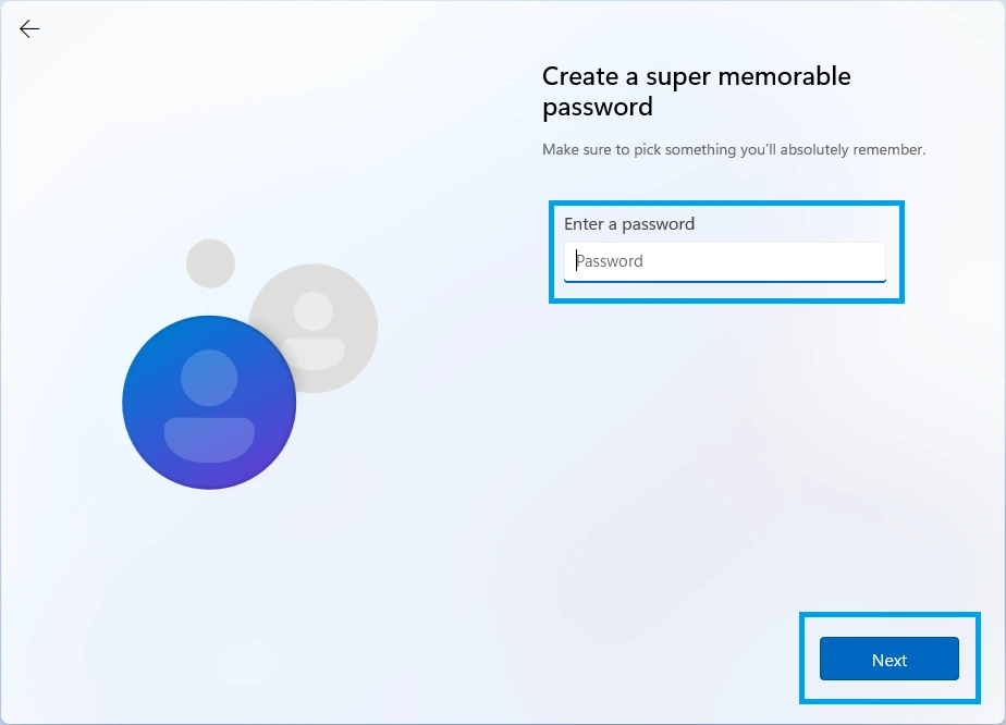 16. Then, enter a password you would like to use to sign into the account. You may optionally leave this blank if you do not want to use a password.